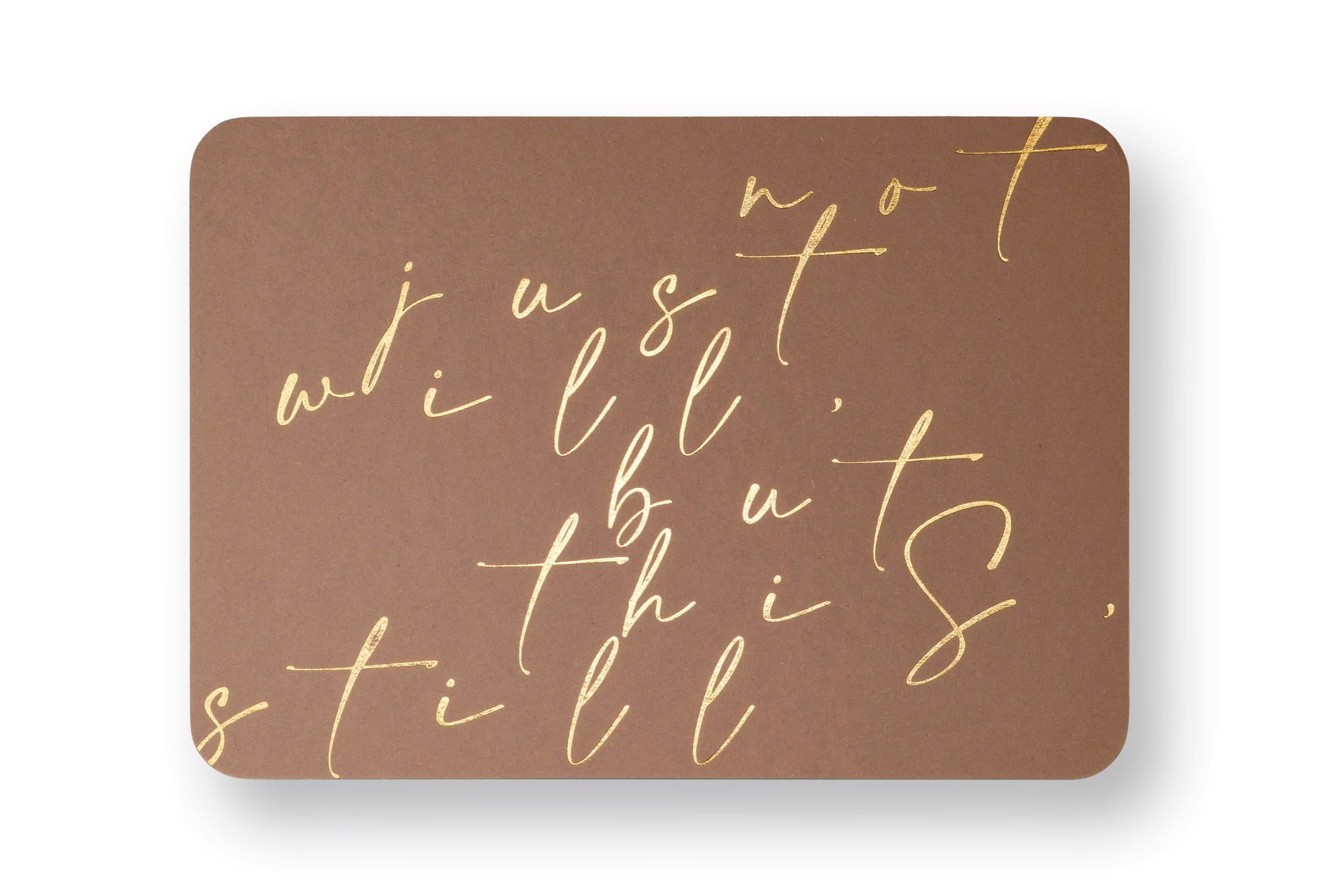 Anonymous Beautifully made and quietly moving. The phrase really stuck with me — it’s gentle but grounding, and the palm brown cardstock feels both bold and comforting. It’s more than a postcard; it’s something I want to keep visible.
